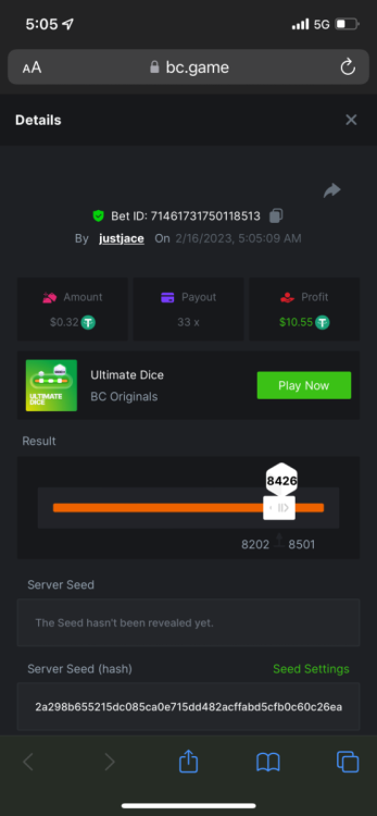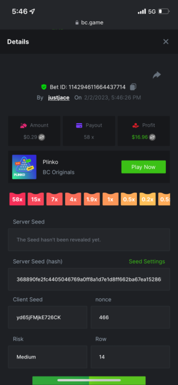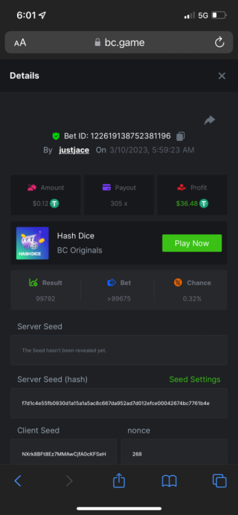 5.1x: https://bc.game/#/sd/118ROTNAR84R9V 8x: https://bc.game/#/sd/118RQVPP8BQYAB 11x: https://bc.game/#/sd/118RPW4RVZQVPV 56x: https://bc.game/#/sd/118RRFI8VER3TF 81.5x: https://bc.game/#/sd/118RS6P6T5KLJN 100x: https://bc.game/#/sd/118U0YISWJW5CJ